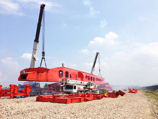 公司現(xiàn)有SLJ900流動式架橋機(運架一體機)3臺、SXJ900架橋機2臺、ME900提梁機2臺、MG450提梁機2套、SXJ550架橋機2臺、SXJ900T低位架橋機(分體式過隧道架橋機)1臺、900噸小輪胎運梁車(過隧道運梁車)1臺、550噸架橋機和550噸運梁車各2臺、SGTJ170公鐵二用架橋機及運梁車2臺套等一系列高速鐵路建設(shè)施工設(shè)備,以及各類安裝和施工配套設(shè)備。